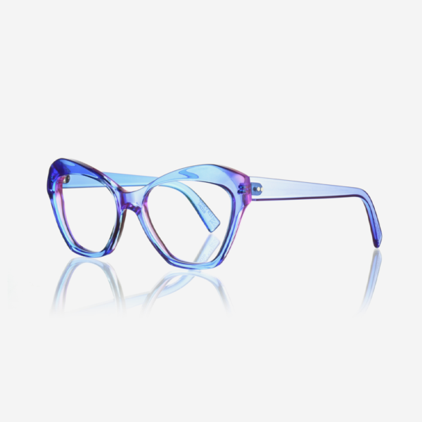 Un occhiale magico, ultra colorato, artigianale e fatto a mano. Un mix di incredibili sfumature dal viola al rosa ghiaccio, bellissimo e di incredibile qualità, grazie ad una resistenza tale da renderlo indeformabile e sempre brillante.
